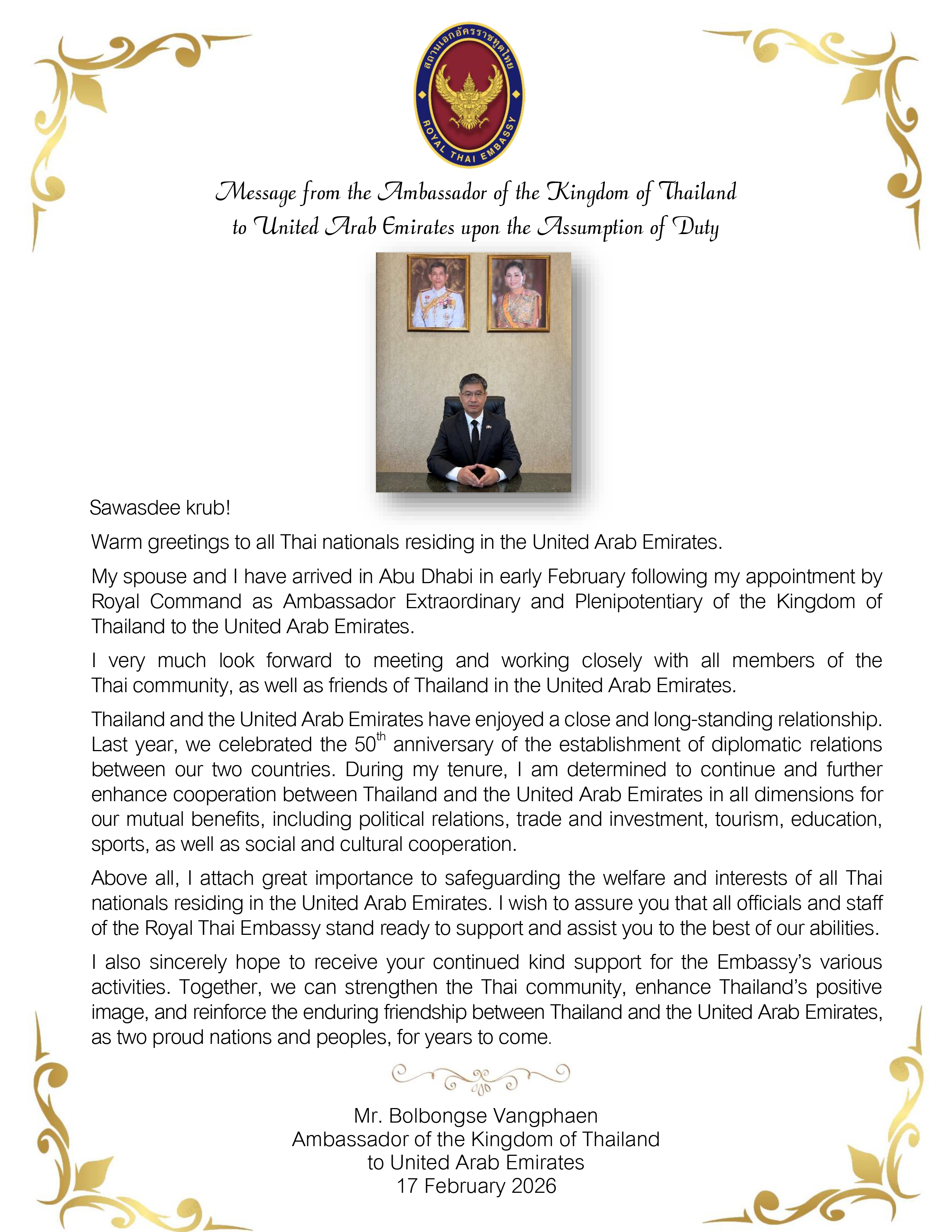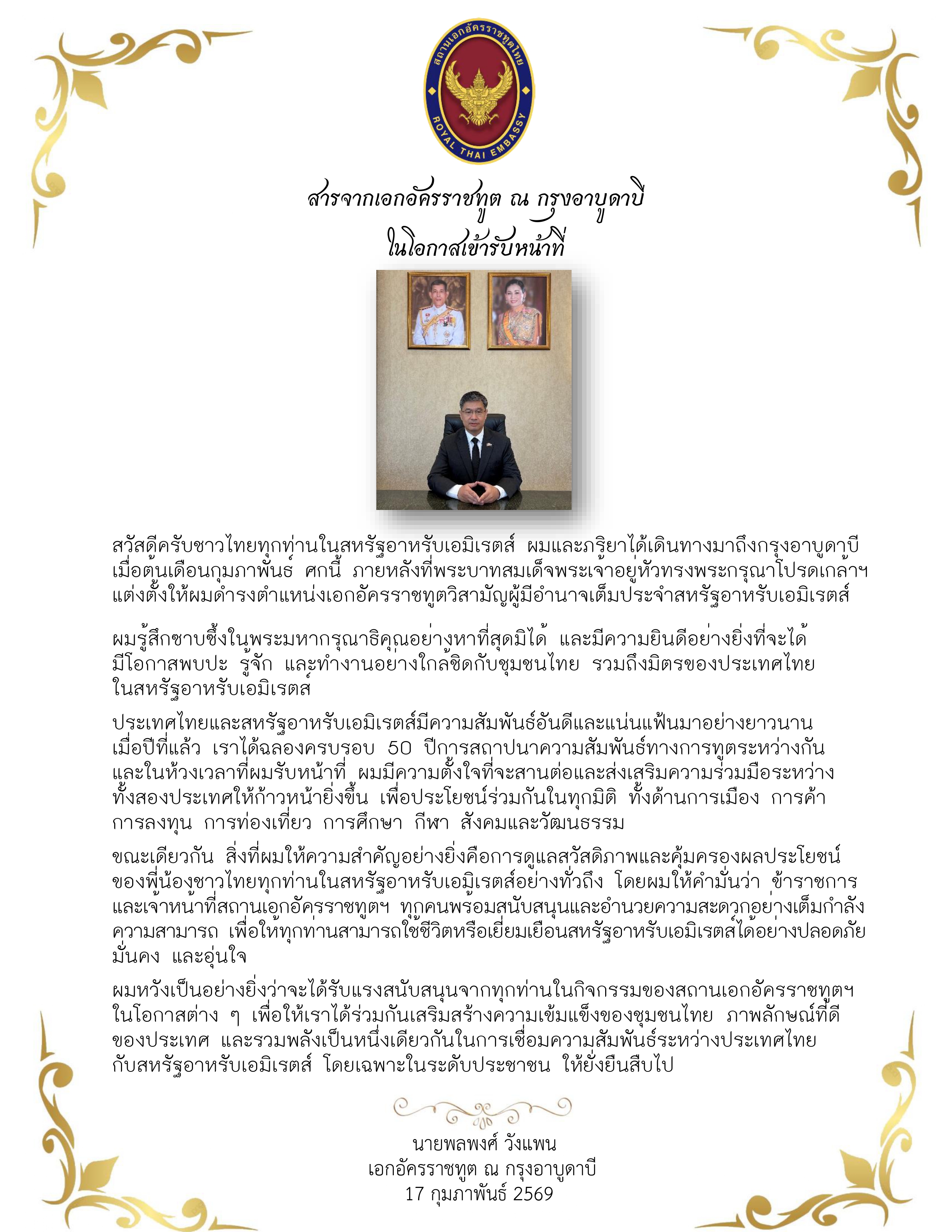 สารจากเอกอัครราชทูต